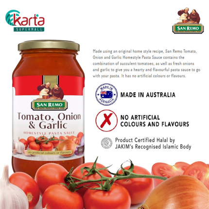 San Remo Pasta Sauce Tomato, Onion & Garlic 500g