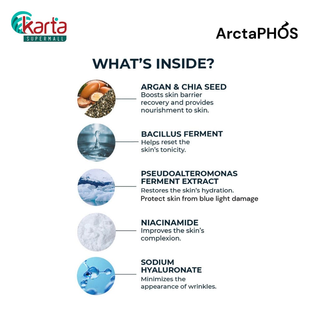 Description:  ArctaPHOS’ Night Repair is a treat for your skin after a busy day! This moisturizer repairs tired skin, resetting its tonicity at night. It’s weightless and non-sticky formula ensures that you enjoy a sound sleep without transferring any product on your pillow.