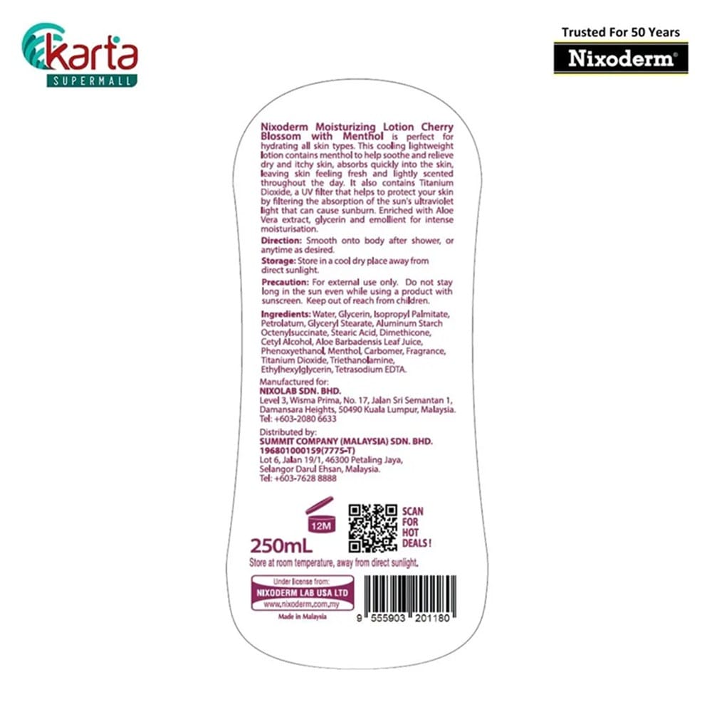 About Nixoderm Face & Body Cleanser Bundle + FREE Nixoderm Moisturising Lotion 250ml (Cherry Blossom with Menthol)