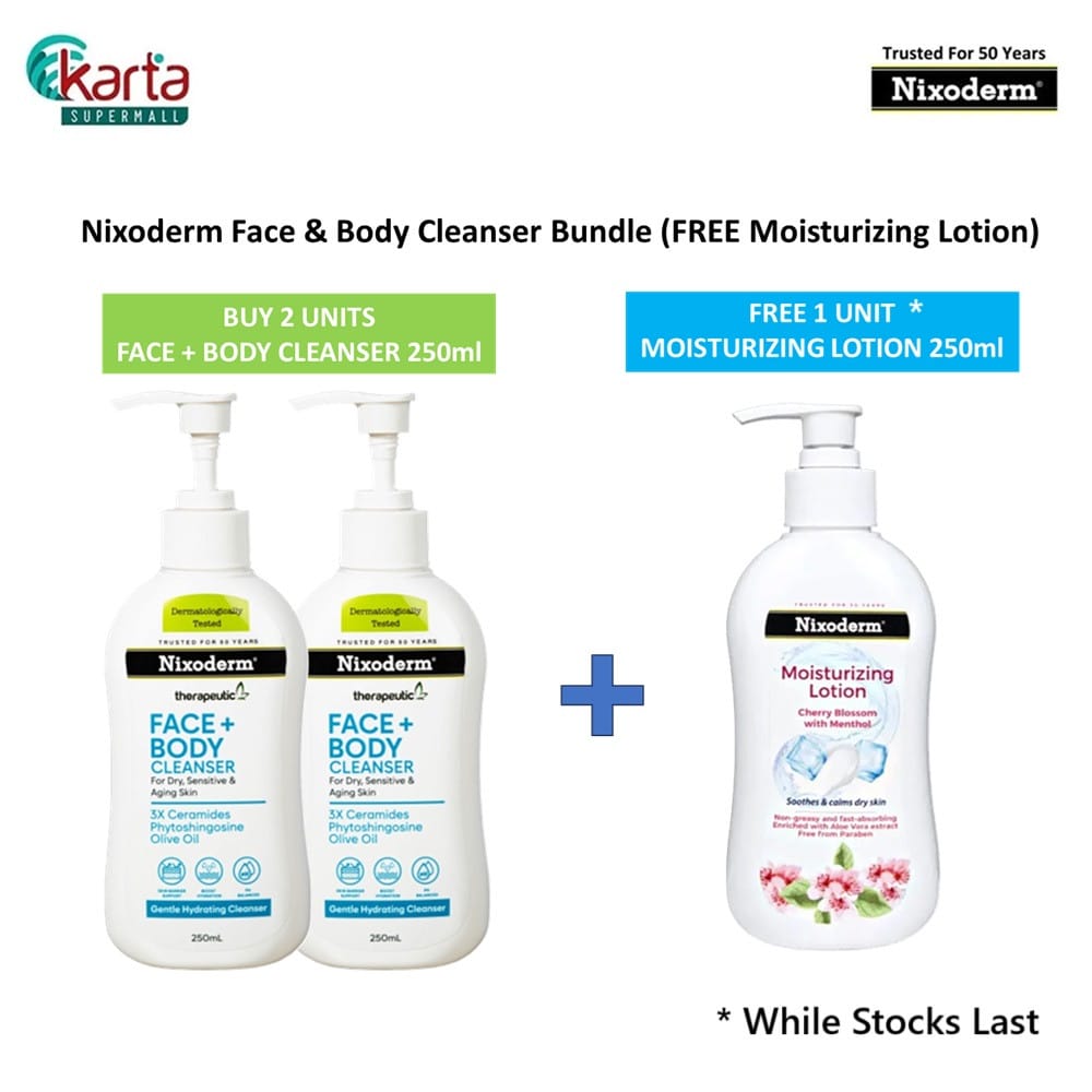 Nixoderm Face & Body Cleanser Bundle + FREE Nixoderm Moisturising Lotion 250ml (Cherry Blossom with Menthol)