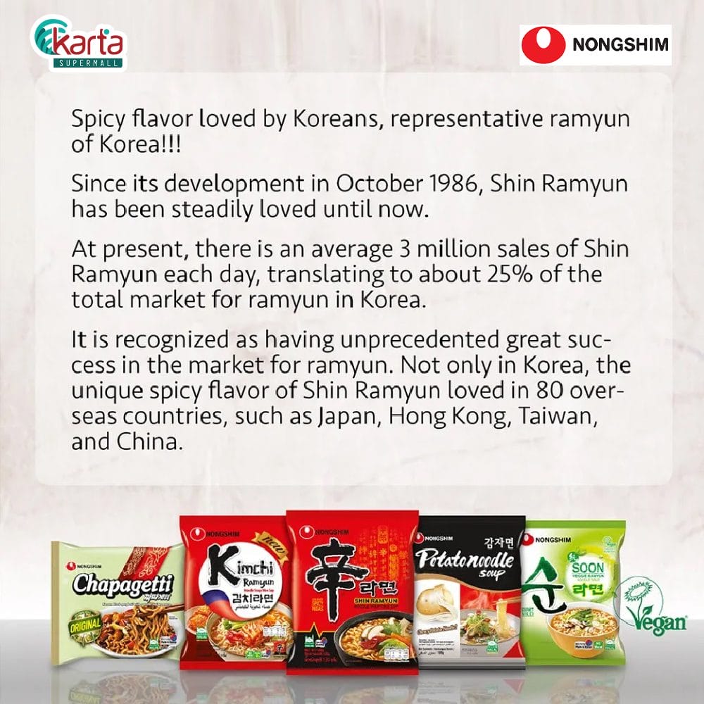 – No.1 representative ramyun in Korea made by Nongshim’s state-of-the-art facilities and technology.
