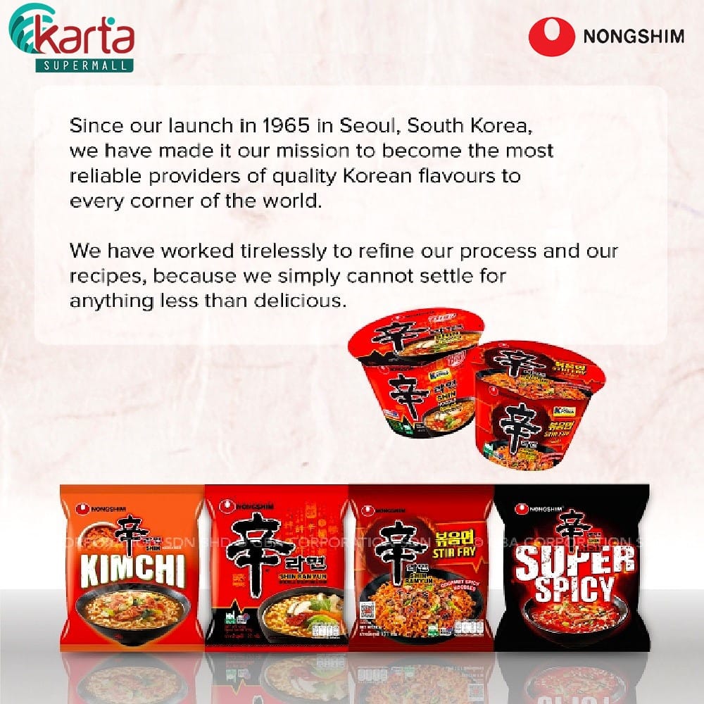 Nongshim was founded in 1965 under the name Lotte Food Industrial Company. The name was changed to Nongshim in 1978. Nongshim is the largest instant noodles and snack company in South Korea. Nongshim is the taste representing Korea, the taste that touches the heart of the world.
