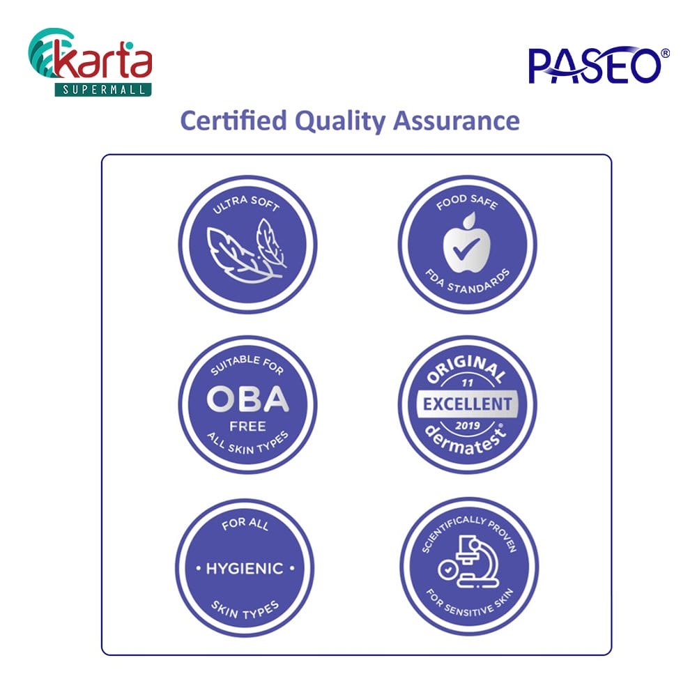 PASEO has acquired international certification to guarantee the safest tissue for our consumers. Certifications such as Dermatology, Hypo-Allergenic, Food Grade and manufacturing best practice provide safety, hygiene, and quality assurance to our consumers at large.