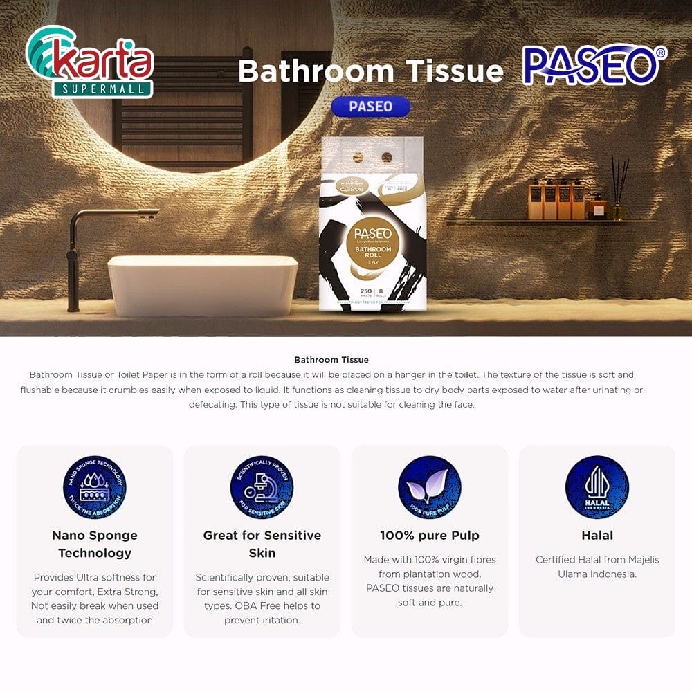 Luxurious Comfort in Every Sheet. PASEO XOXO Bathroom Roll brings you luxury touch without compromise for you daily comfort use. The only bathroom tissue product that provides 8 benefits for your skin. It’s simply the tissue that loves your skin.