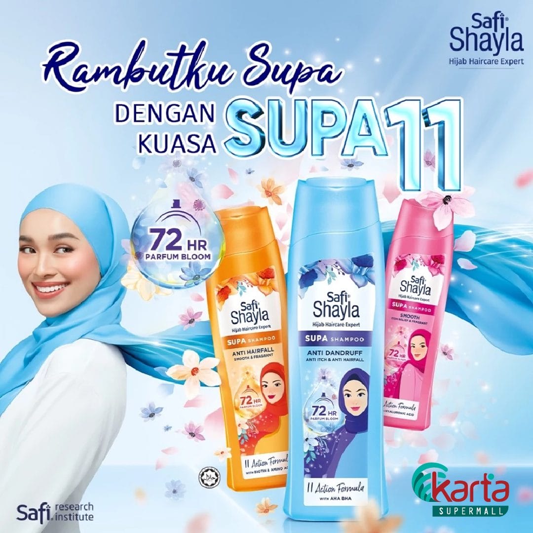Safi Shayla Micellar – Fresh & Anti Itch SUPA Shampoo is infused with 1st in Malaysia Breakthrough Hijab Scalp Biotics Technology to rebalance scalp microbiome as the foundation for healthier scalp & thicker hijab hair and powered with 11 SUPA ACTION FORMULA for 11-in-1 multi-benefits for long lasting clean & fresh scalp and weightless soft hair.