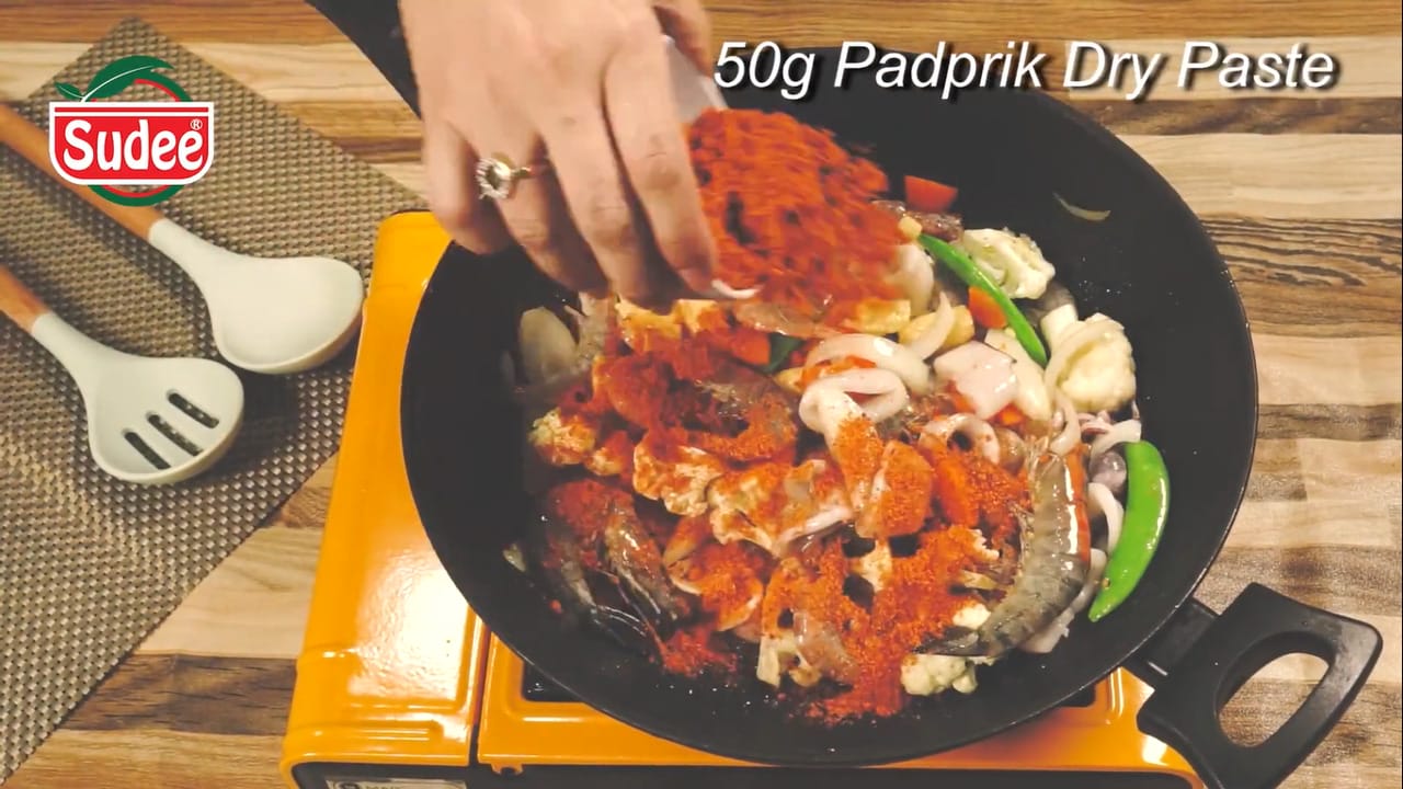 Sudee Padprik is a Dry Paste that is packed in 35g printed foil and is suitable for 3 – 4 servings.