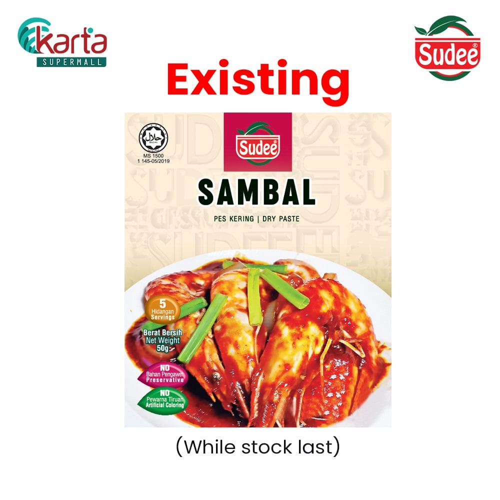 Sudee Sambal Paste is a Dry Paste that is packed in 50g printed box and is suitable for 5 – 6 persons' servings.